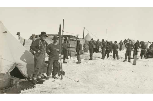 Ernest Shackleton was born in County Kildare in 1874, into an Anglo-Irish family. After school, where he did not excel, he joined Mercantile Marine and in 1901 signed up to Scott's expedition to Antarctica, the first official British exploration of the Antarctica since James Ross's voyage 60 years earlier. They took huskies, but left the dog-handlers behind. None of the party knew how to ski. Their lack of skill with the dogs meant they made mistakes about feeding them. The animals were all soon killed and eaten by the men, who struggled with scurvy, snow blindness and frostbite. Christmas Day 1902 was only enlivened by a Christmas pudding Shackleton had kept hidden in his socks. He was eventually invalided home with scurvy. Nonetheless, in 1907, he launched his own expedition on the Nimrod. Money was tight, but Shackleton had high hopes of rewards when he got back. In 1907, he wrote to his wife, "I have already made arrangements with Heinemann to publish a book on my return, and it means 10K if we are successful. That is quite apart from all the newspaper and news which we hope to fix up tomorrow. ... I think it will be worth 30,000 in the way of lectures alone, judging by what the lecture agency said today. Then, sweetheart, we will settle down to a quiet life with the little ones."