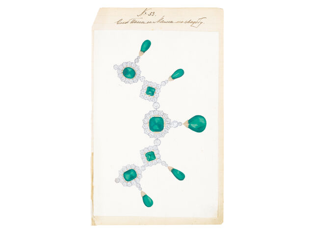 As the elder daughter of Tsar Alexander III, and sister of the future Nicholas II, Grand Duchess Xenia grew up amid the splendour of the Russian court. Two albums of her inventory of jewellery that Bonhams is offering as part of the Russian Sale, give an insight into the family's wealth. The albums catalogue the pieces and have sketches of the designs, including the Fabergé potato charm, a trinket issued to members of the 'Potato Society' at Gatchina Palace. Married aged 19 to Grand Duke Alexander Mikhailovich, her first cousin, Xenia received a million rouble dowry. For the wedding ceremony she wore a diamond necklace, a triple-row diamond bracelet and diamond earrings. It marked one of the last times that the Crown commissioned jewellery from the Treasury. However, her bejewelled wedding robe and headdress were so heavy that, when the big day came, the slight grand duchess found she could barely move.