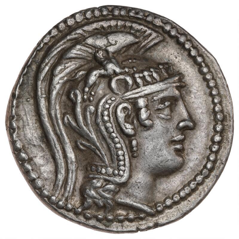 Ancient Greece, Attica, Athens, New Style coinage, Tetradrachm, 139/8 BC with Herakleides, Eukles and Askle- as magistrates, Head of Athena right, Owl standing on amphora, 16.62 g, HGC 4, 1602, Thompson 750a - double struck on rev.